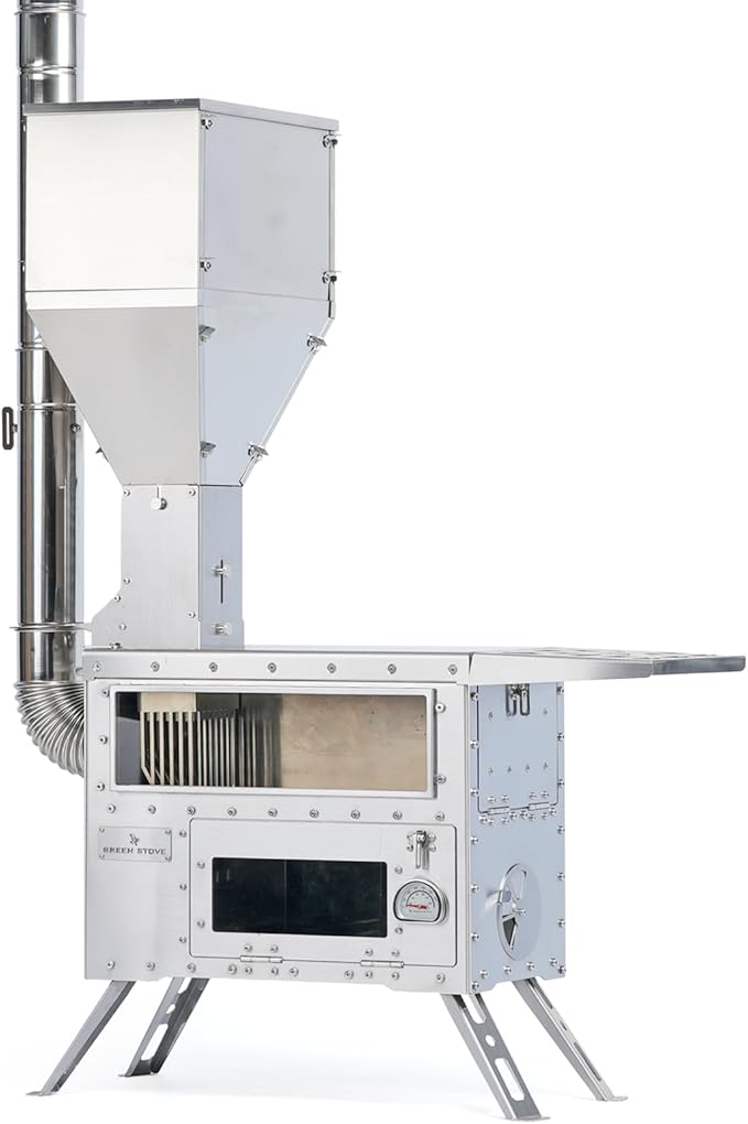 Hori 5 Pellet Stove with Oven for Tent Camping, Portable Wood Burning Stove with 8 Chimney Pipes for Hiking, Cooking, Hot Tent and Outdoor Use