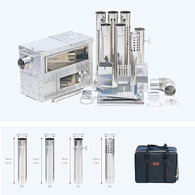 - Compact & Portable Design – All parts, including chimney pipes, store neatly inside the stove body for all-in-one packing. Easy to carry and perfect for camping, overlanding, or any outdoor adventure.
