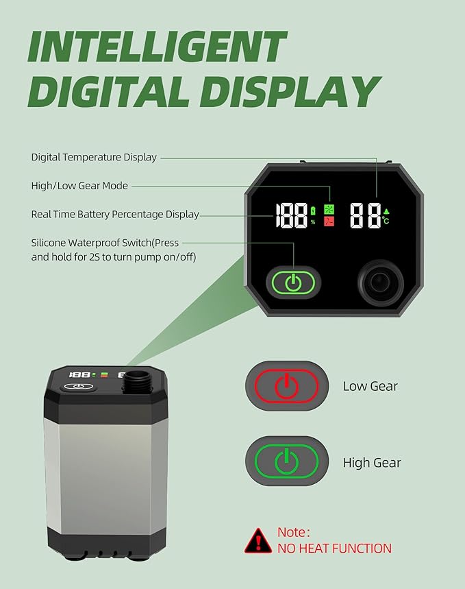 - 【Smart LED Display & Temperature Monitoring】 The intuitive LED screen shows real-time battery level and water temperature (10-50°C/50-122°F), allowing users to avoid scalding and manage power efficiently. This portable outdoor shower is perfect for camping, beach trips, or RV adventures. Tips : This unit does NOT heat water.