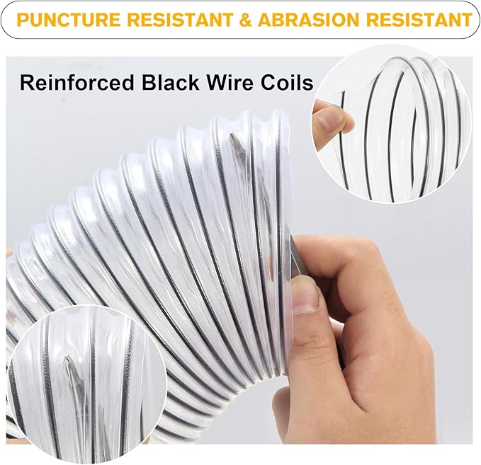 - CLEAR HIGH QUALITY PVC: Clear PVC collection hose is made of pure PVC material, which allows you to clearly see if there is any buildup or clogging. The high quality material makes the hose strong, durable and wear-resistant, with better puncture resistance.