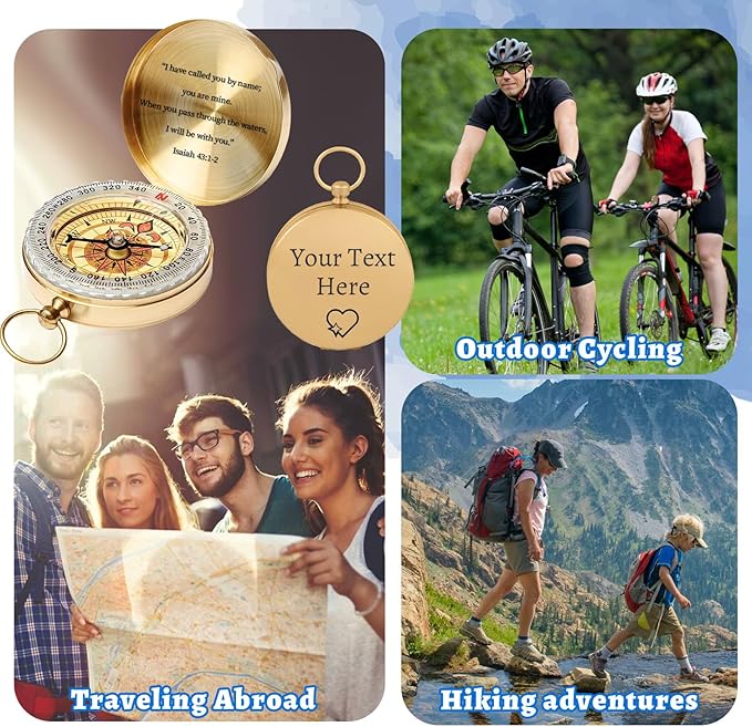 - Custom Compass: Transform this solid brass compass keychain with personalized text. Add names, initials, or coordinates via the "Customize Now" option for a unique outdoor accessory, ideal as graduation gifts or explorer keepsakes