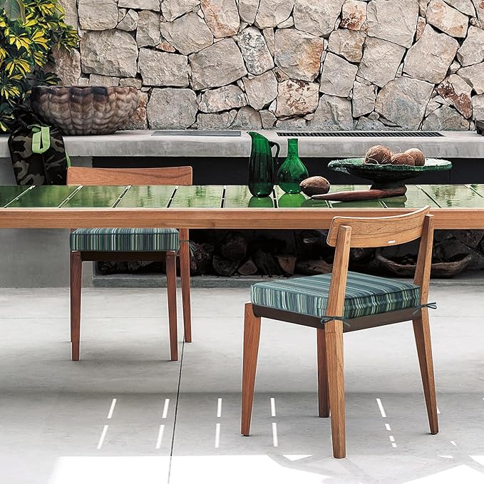 Sunbrella Square Corner Seat Cushions, 19" x 19" x 3", Set of 4, Indoor Outdoor Water Repellent Universal Chair Pads with Ties for Patio Furniture, Garden Deck Dining Chairs, Beach Stripe Lagoon
