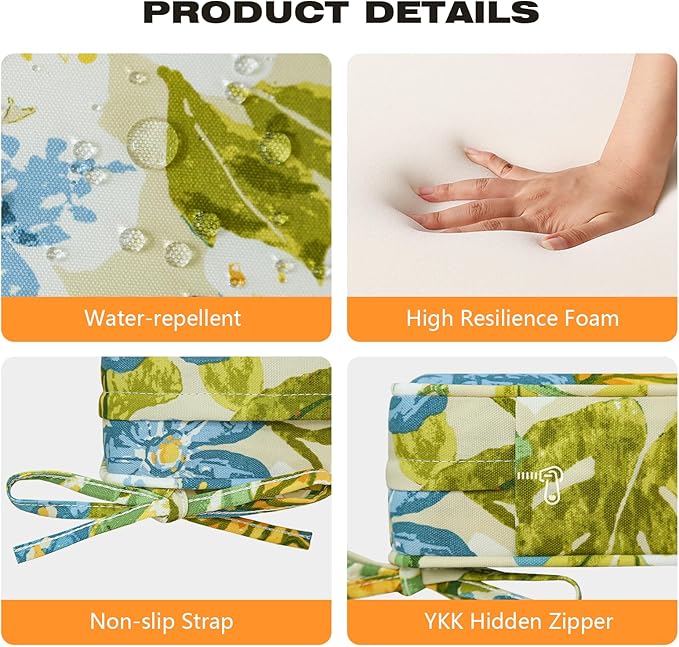 - 【Non-slip Ties and Piped Edge】 The two non-slip ties can be fastened to your furniture to keep the outdoor cushion in place. Some seams are finished with piping, which reinforces the edges and makes the outdoor furniture cushion more stylish.