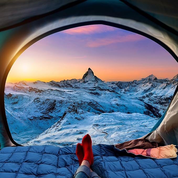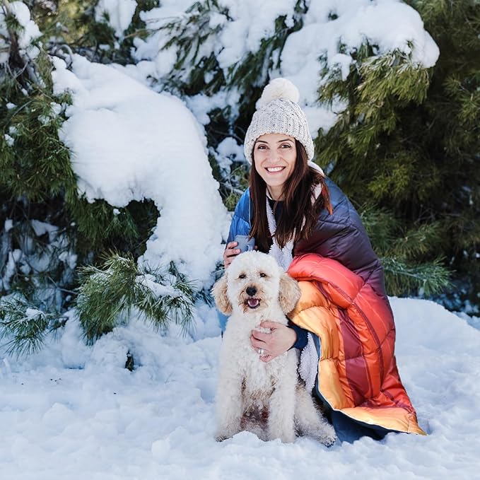 zzlamb Puffy Down Camping Blanket Water-Repellent, Down Throw Travel Blanket Portable for Outdoor, Light Warm Quilt for Couch Plane Car Theater Stadium Picnic RV Backpacking Hammock