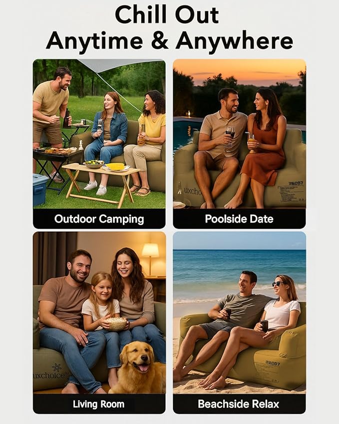 - Stylish Design for Any Space: With a smooth fabric finish, neat stitching, and balanced proportions, this blow up couch offers a high-end look. Side straps add style and practical storage, making this air sofa a standout in the living room, patio, or campsite