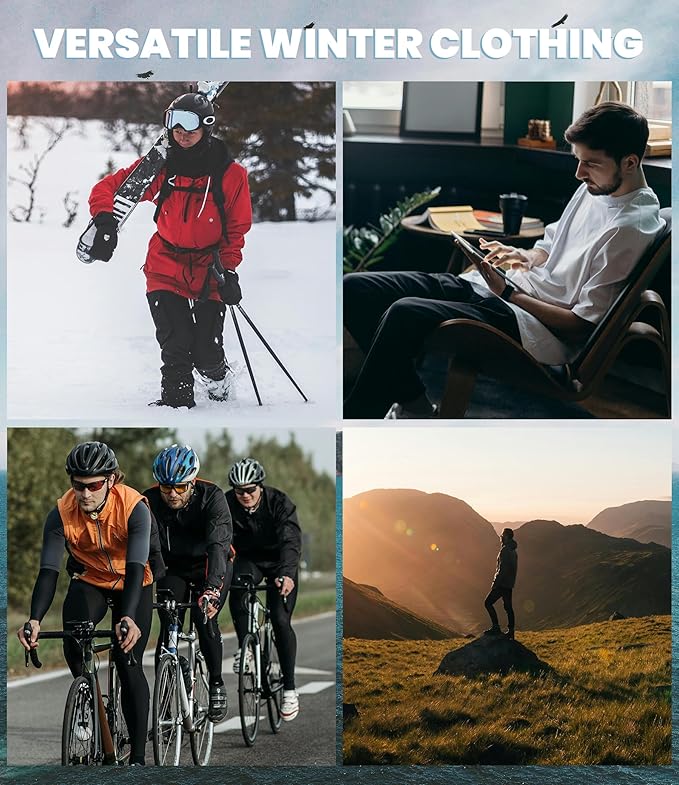 - Layering is Essential: Whether you're layering under formal or casual attire for outdoor activities like running, skiing, cycling, hiking, or lounging at home in comfy black pajamas, this suit has you covered. It provides a streamlined look without sacrificing warmth. M-2XL fits all mens body types. Elevate your winter wardrobe with OBFUN's thermal clothing that combines style and function for ultimate comfort in cold weather.