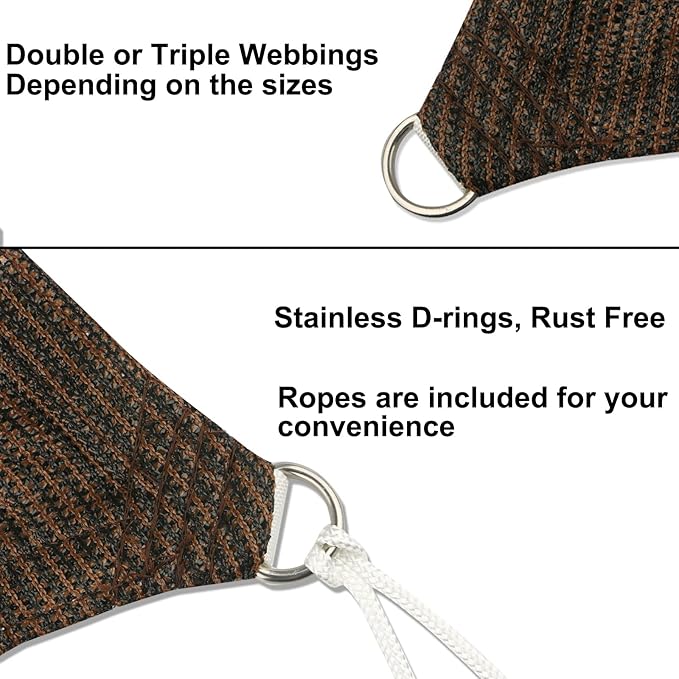 20' x 20' Brown Outdoor Sun Shade Sail Canopy ??UV Resistant Permeable Awning Fabric for Patio, Garden, Backyard, Pergola, Carport, Lawn Shelter Cover