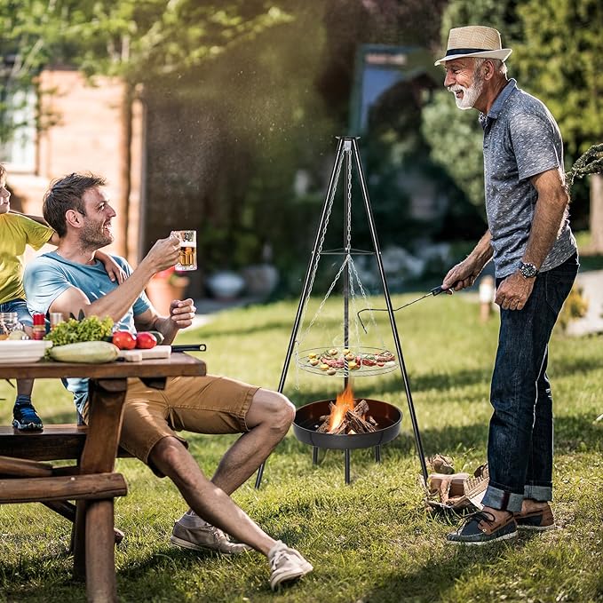 - 【Adjustable Cooking Height】Equipped with a chain system to easily raise or lower the grill grate for perfect heat control over open flames