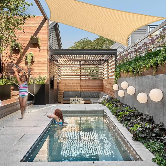 - 5. Wide Applications (Outdoor Use) Perfect for patio, pergola, garden, backyard, pool, deck, or carport. Breathable fabric lets air and rain pass through (no water pooling, UV and water resistant).