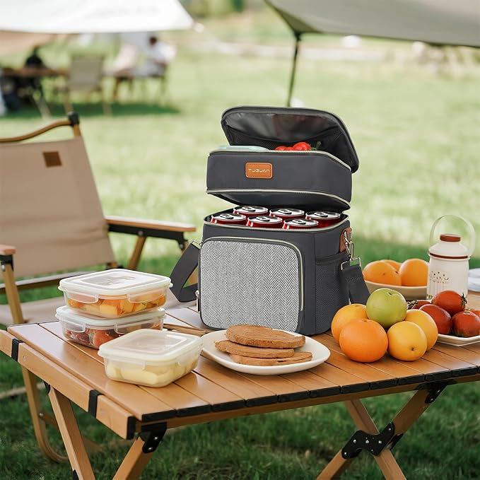- Double-Layer Insulation Cooler for Ultimate Freshness: The small cooler bag dual-layer design keeps your food and drinks at the perfect temperature. Top layer (3.1"H) for fruits/food and bottom layer (7.9"H) for beverages, complete with an 8-hour cooling ice pack.