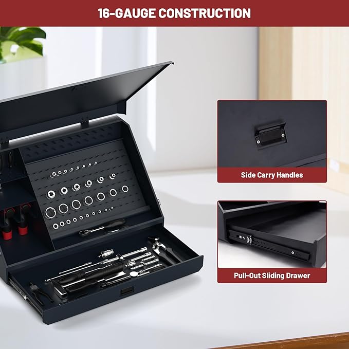 - ✅ Heavy-Duty Powder-Coated Steel Construction: Built from robust, powder-coated 16-gauge steel with expertly welded seams for superior strength—no weak spot welds. This design ensures long-lasting durability while keeping your SAE and Metric tools securely organized for years of demanding use.