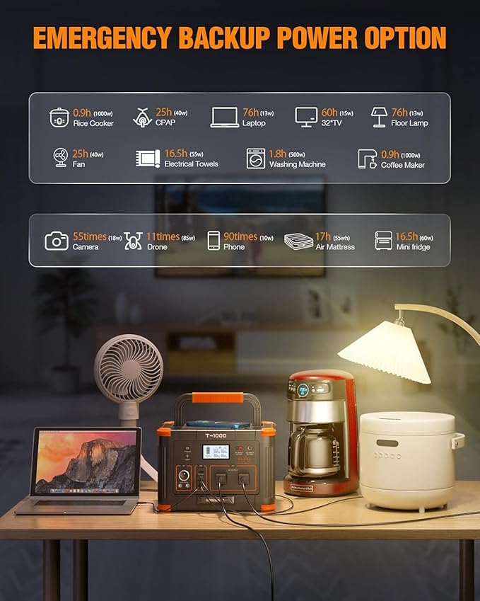 - 【Supports up to ten electronics at once】GRECELL portable power station 1000w is equipped with 2*AC socket, 3*USB QC port, 1*USB-C PD port, 2*DC 12V port, 1*12V cigarette lighter port, 1*Wireless charging port, 1*LCD display, 1*LED light, 1*Flashlight with SOS mode, power your laptops, tablets, phones, lights, CPAP medical devices, TV, mini-refrigerator anytime