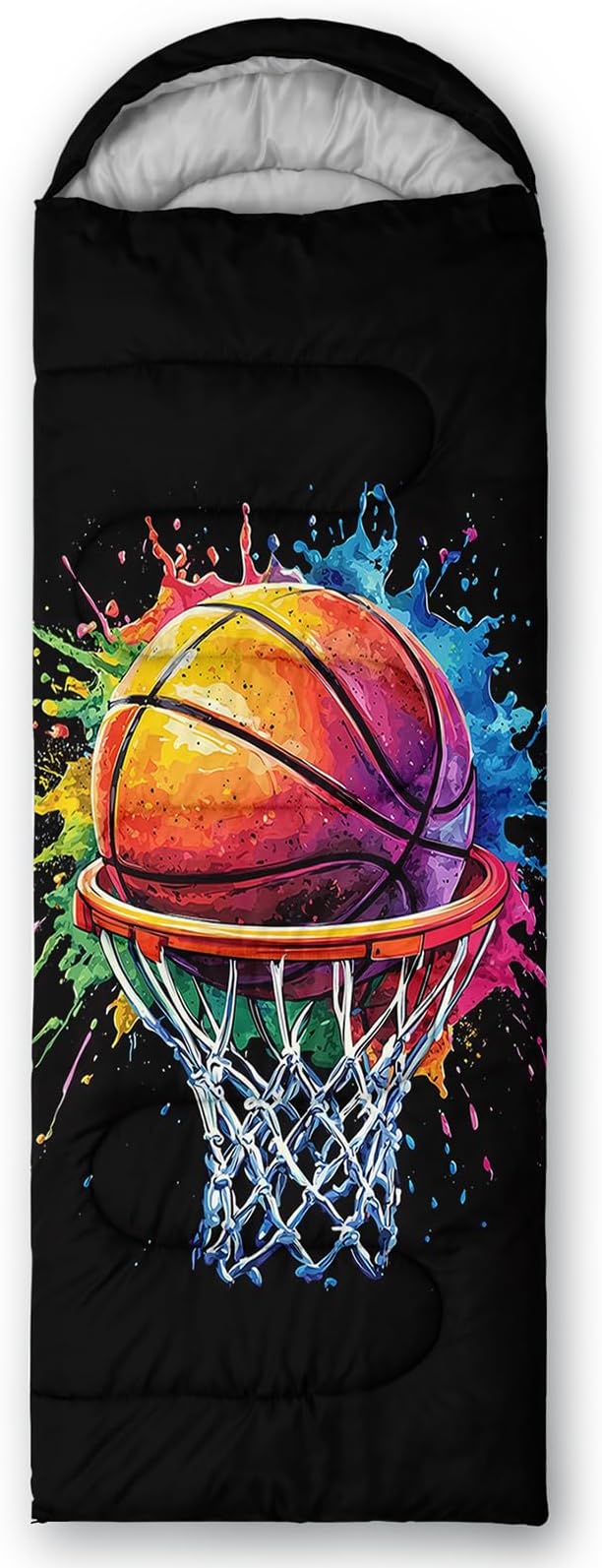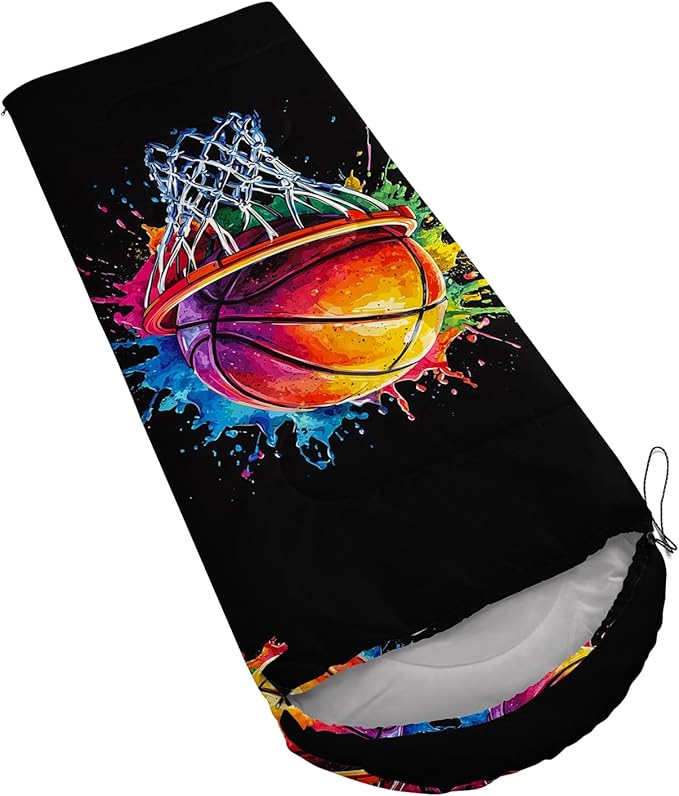 - Easy To Clean: This Basketball print camping sleeping bag can be hand wiped or machine washed, versatile and easy to clean, versatile and convenient, comes with a Carrying Bag for easy portability
