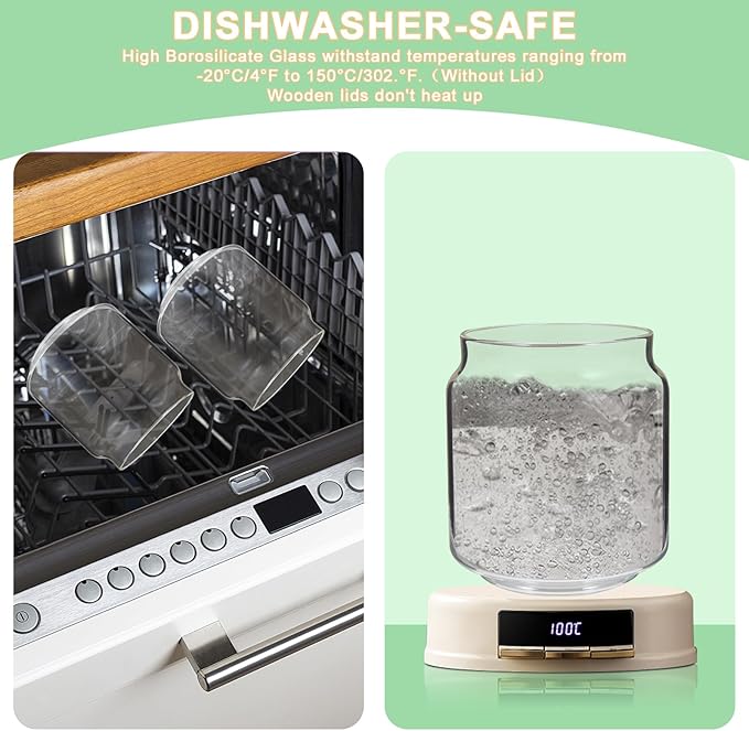 - 【MATERIAL & QUALITY】: Big Glass jars made of high-borosilicate glass With the advantages of high temperature and low temperature resistance,Can burn directly on induction cooktop, withstand temperature range 150℃ /302°F to -20℃/-4°F(Acacia wood Lid can not be covered, if in a hot environment.)Glass food storage containers with lids can be used in the refrigerator .