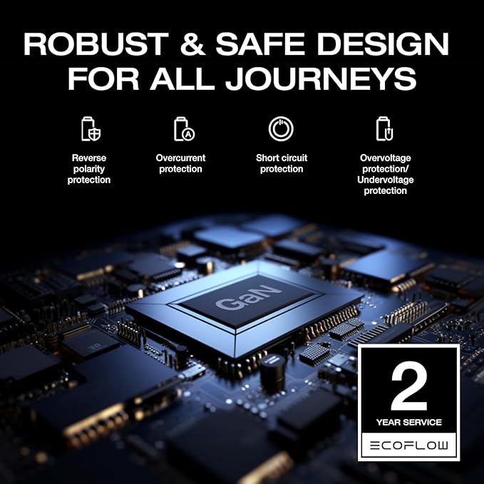 - [Safe Charging & Vehicle Protection] By using GaN technology the DC-DC Charger converts more electricity without any risk of overheating even when charging at high speeds. The charger protects your vehicle against reverse polarity, overcurrent, short circuit, over and under voltage. Includes a 2-year service.