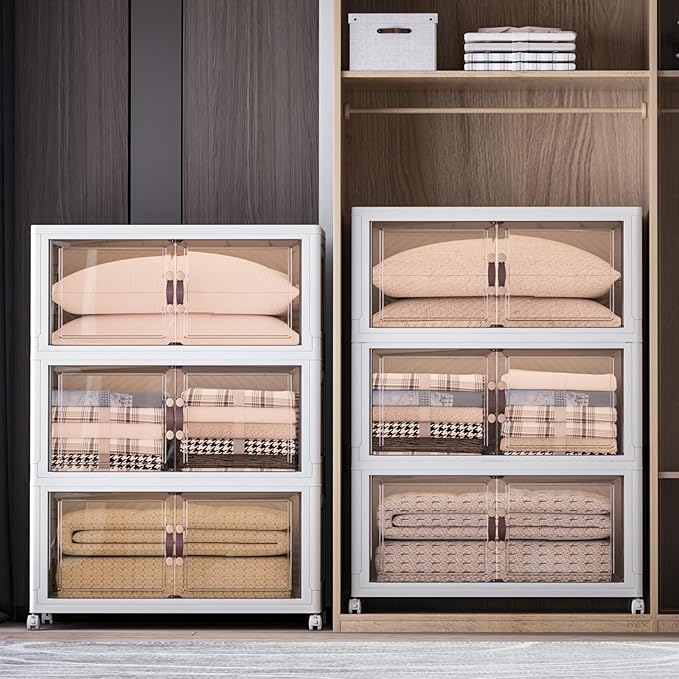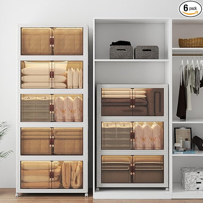 Extra Large Stackable Storage Bins with Lids & Wheels & Door, 960QT-160QT/40GAL*6Pack Foldable Collapsible Closet Organizers, Plastic containers drawers for bedroom Dorm