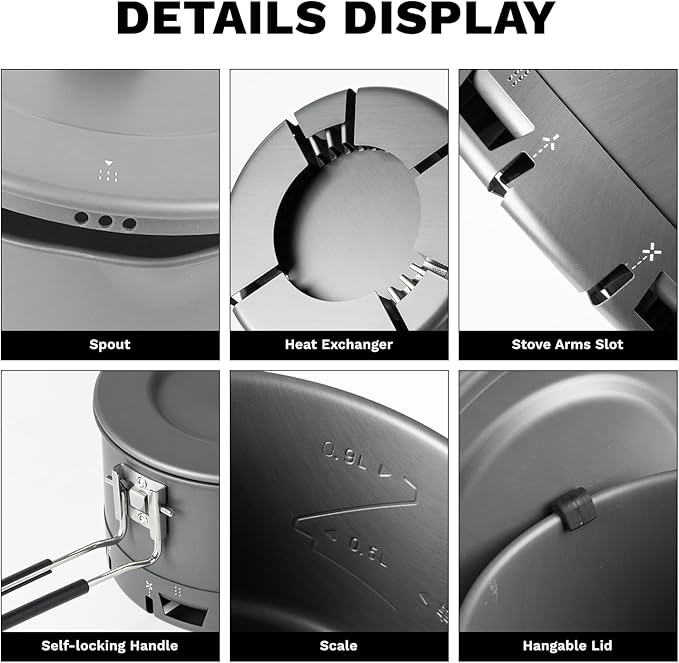 - Ultralight & Compact - Weighing only 188g (6.6oz) with a nested size of 147×146×108mm (5.8×5.7×4.3in), this hard-anodized aluminum pot is engineered for solo hikers prioritizing weight savings without compromising on cooking performance.