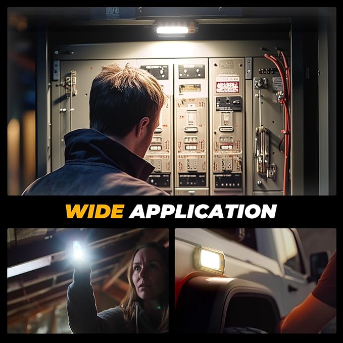 - 【Ultra Compact】This work light can be used as a flashlight, providing a powerful spotlight to illuminate details and hidden areas in your work environment. Its compact dimensions of 4.53*2.56 inches and a weight of 5.08 oz allow this work flashlight easily carried with you. Whether you're on a nighttime patrol, or searching for specific items, using this work light as a flashlight can significantly enhance your efficiency and ease of use.