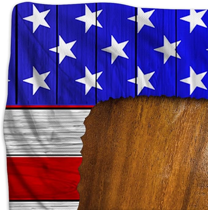 - Complete Vintage American Flag Set: Features a patriotic distressed flag print table cover PLUS two matching bench covers.