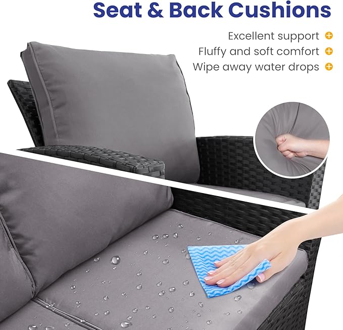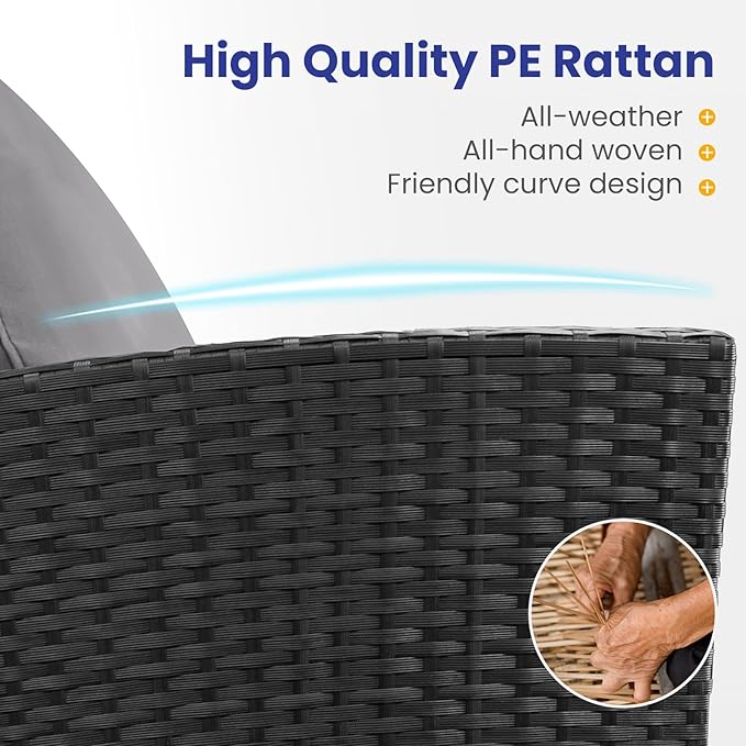 - All-Weather Durability: Built to last,the patio furniture set combines rugged construction with low-maintenance care. The powder-coated steel frame and handwoven PE wicker can spend less time maintaining and more time enjoying your outdoor