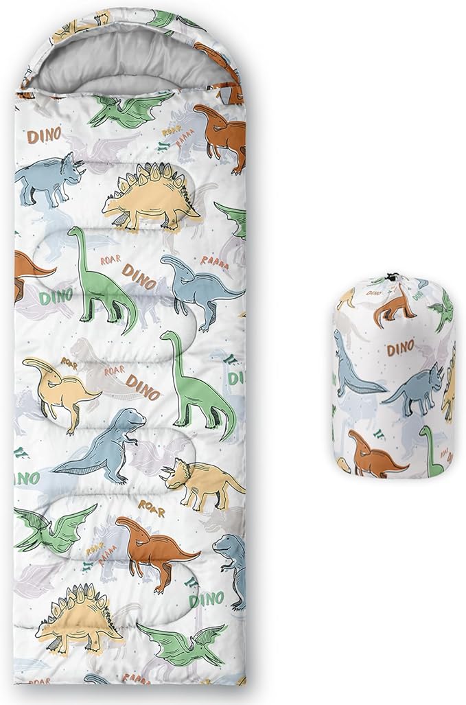 - Unique Dinosaur Design:This Dinosaur pattern sleeping bag is made of 3D digital printing with vibrant colors and patterns,size: 31W x 90L inches,temperature range: 32℉-77℉ (0℃-25℃),it also also have a weather resistant waterproof design to keep you warm and prevent you from any dampness,can be used in 3 seasons