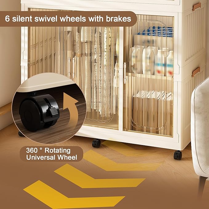 - 【Magnet Doors & Moveable Design】Each door is equipped with magnets,will not open when not in use, and will easy to open,ensuring a secure closure and keeping your clothes safe. There are also 6 rotating wheels at the bottom, which makes it easy to move.
