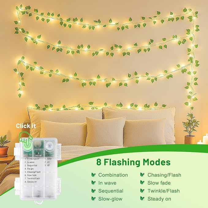 - 🎯 【23ft Flexible Vine & Easy Setup】The 7-meter-long vine can freely bend and shape, transforming into various forms. It can be used to create personalized displays on walls, shelves, trees or any decorations