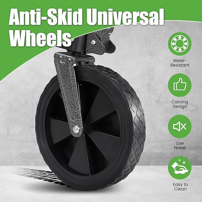 - Smooth Movement on All Terrains: Rugged PVC multi-terrain wheels and 360-degree swivel front wheels can easily traverse sand, concrete, rubber mats, and other surfaces, making it easier, more comfortable, and more versatile to use.