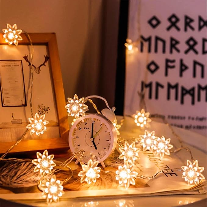 - 【Warm White Holiday Decorative Lights】 This cute fairy lights let your imagination and creativity run wild.The charming flower lights string will create sweet, warm and romantic atmosphere. The elegant design brings you a feeling of elegance, luxury and romance, adding luster to the room or bedroom.