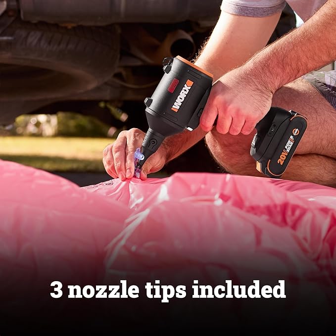 - Includes 3 nozzle tips for versatile use: 2 for blowing, 1 for inflating