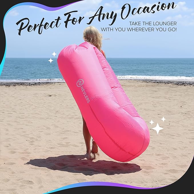 - INFLATABLE LOUNGE CHAIR FOR A FUN VIBE: Spark laughter & excitement at any gathering with this inflatable lounger air sofa , sure to catch everyone’s attention. Great as a gift for outdoor enthusiasts, the portable lounge chair air hammock is a versatile addition to your adventure gear. Bring comfort anywhere, whether you need a concert chair , festival chair , beach hammock , pouch couch , or even an alternative to an inflatable bean bag chair .