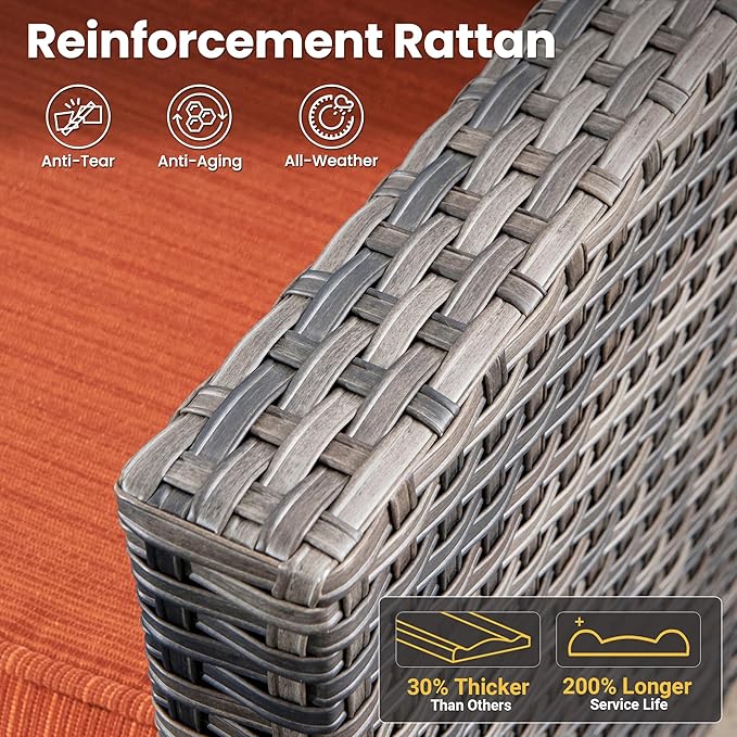 - Sturdy Frame & Wicker: Made of powder-coated metal frame and covered in weather-resistant PE rattan, handwoven wicker make the whole set much more sturdy.