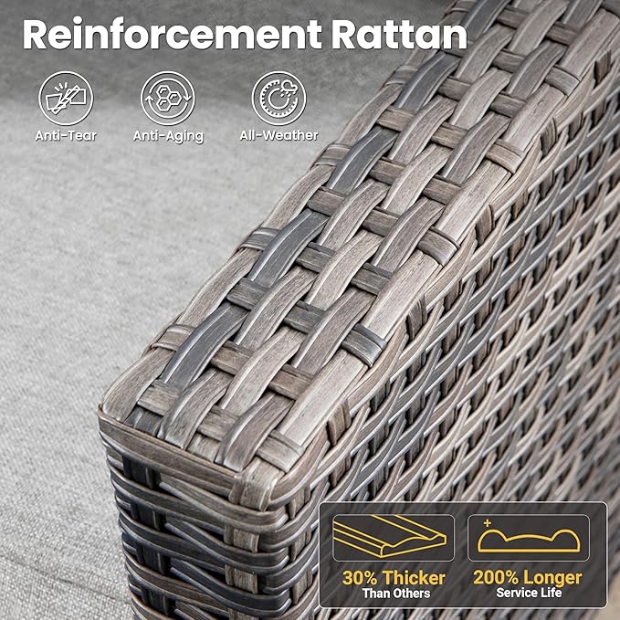 - Sturdy Frame & Wicker: Made of powder-coated metal frame and covered in weather-resistant PE rattan, handwoven wicker make the whole set much more sturdy.