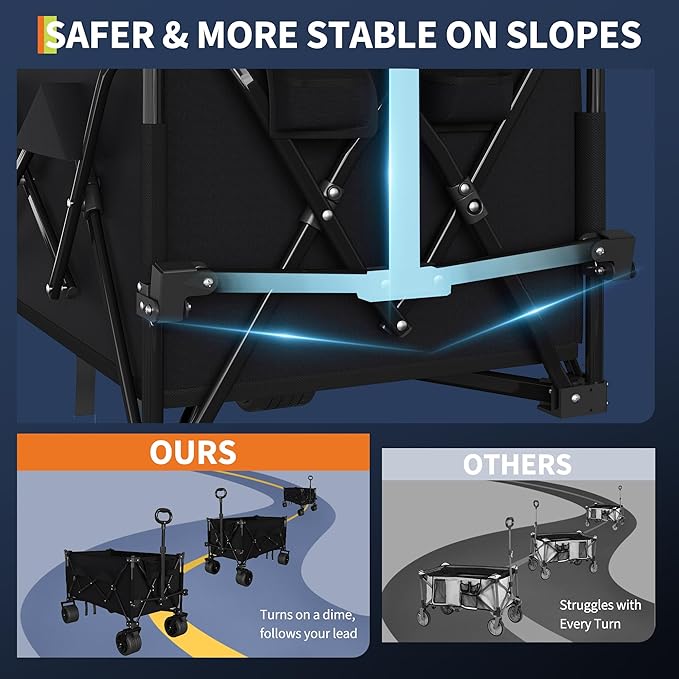 - Built to Last: This large beach wagon features a strong steel frame and 600D Oxford fabric, ensuring an extra-high weight capacity of up to 350 lbs. Meanwhile, the thickened Oxford fabric provides maximum tear resistance
