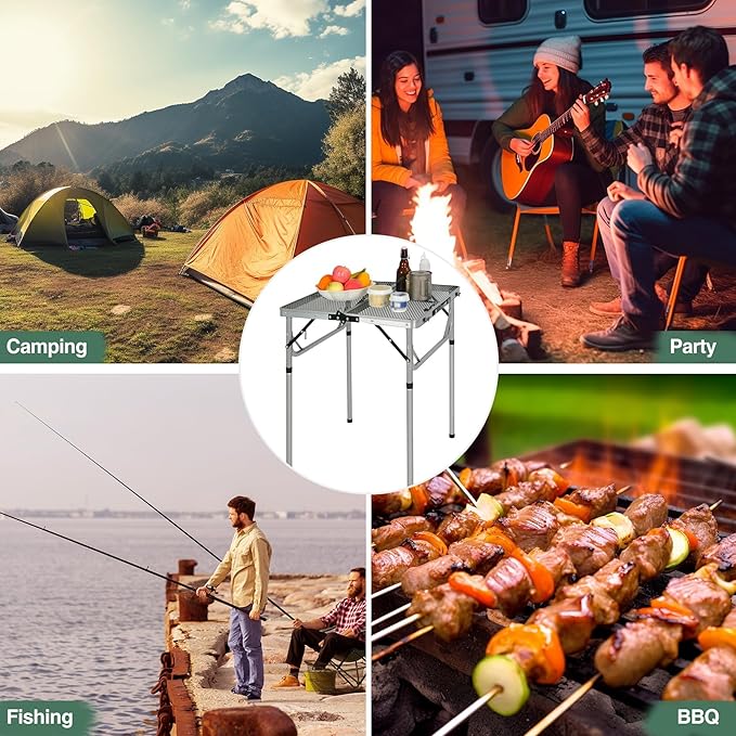 - [Multifunctional Folding Table] Our special grill table is perfect for BBQ, grilling, camping trip, travel, sports events, RV outside, fishing.