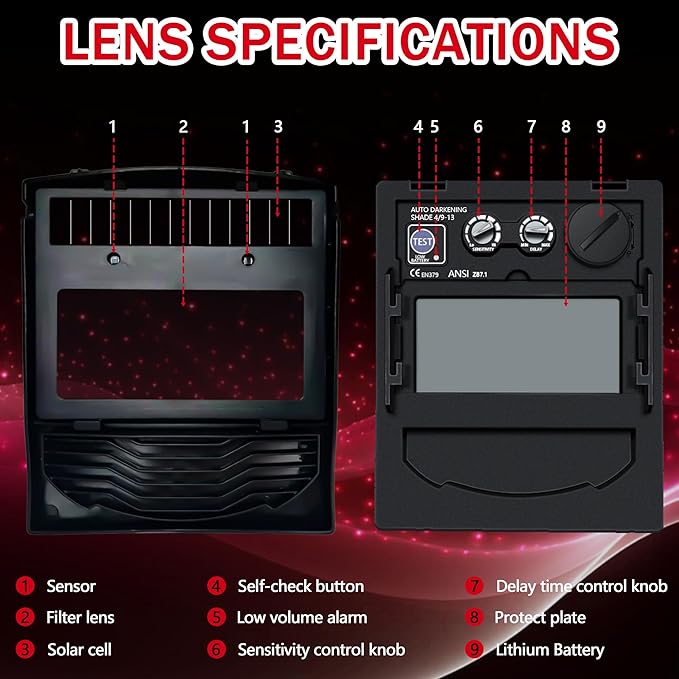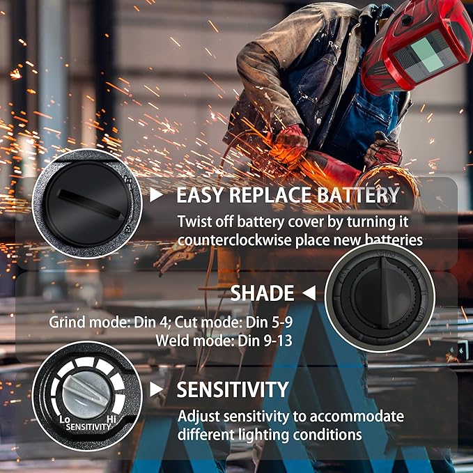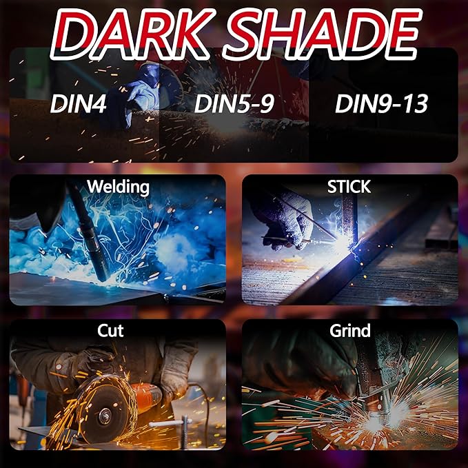 - Fast Auto Darkening Response – Reacts in 3/10000 second to shield your eyes from arc flash, UV, and IR radiation, ensuring maximum protection and safety.