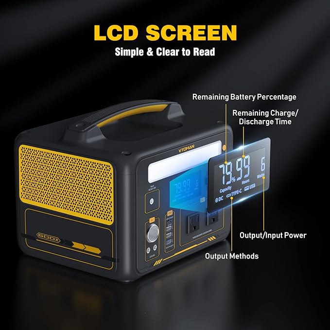 - 【SuperSafe LIFEBMS Power Station】VTOMAN Jump 600X portable power station features a super safe LIFEBMS protection system developed by VTOMAN, which provides multiple protection for the battery, including Over-Charge Protection, Over-Discharge Protection, Over-Voltage Protection, Over-Current Protection, Short-Circuit Protection, High-Temperature Protection,etc. Also thanks to the built-in LiFePO4 battery, the safety of the battery is further improved, which is much safer than NCM batteries.