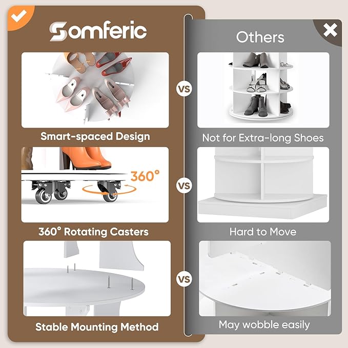 - ๐๐๐ณ๐ฒ ๐๐ฎ๐ฌ๐๐ง ๐๐ฉ๐ข๐ง๐ง๐ข๐ง๐ ๐๐ก๐จ๐ ๐๐๐๐ค ๐๐จ๐ซ ๐๐จ๐ฆ๐ฉ๐๐๐ญ ๐๐ฉ๐๐๐๐ฌ โ This 360ยฐ rotating shoe carousel makes finding your favorite pair effortless. Its slim, space-saving build fits neatly in tight spaces like closets or corners, doubling as both a functional shoe organizer and a stylish home dรฉcor piece.