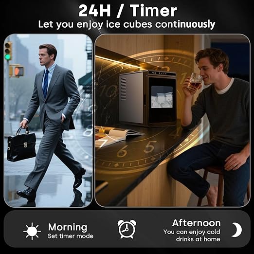 - 【Quiet Operation & Built-In Timer】With low-noise technology (under 40dB), this ice maker won’t disturb your home or business. The 24-hour timer lets you schedule ice production in advance—wake up to a full ice basket!