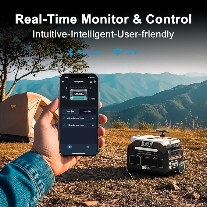 - 【Smart APP Control】You can use the mobile phone APP to connect to the indoor power generator, control the input and output power of the power station at any time, monitor the remaining power of the equipment, etc.