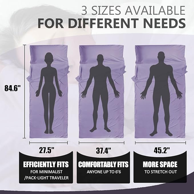 • Home-Feeling Travel Sheet: Get ready for the ultimate in comfort on your next adventure! Our luxurious Travel sheet will make you feel like you're back home, no matter where you are. They're breathable and super silky soft, so you can relax and enjoy the ride. And the integrated pillow sleeve offers additional comfort and protection, so you can sleep like a baby!
