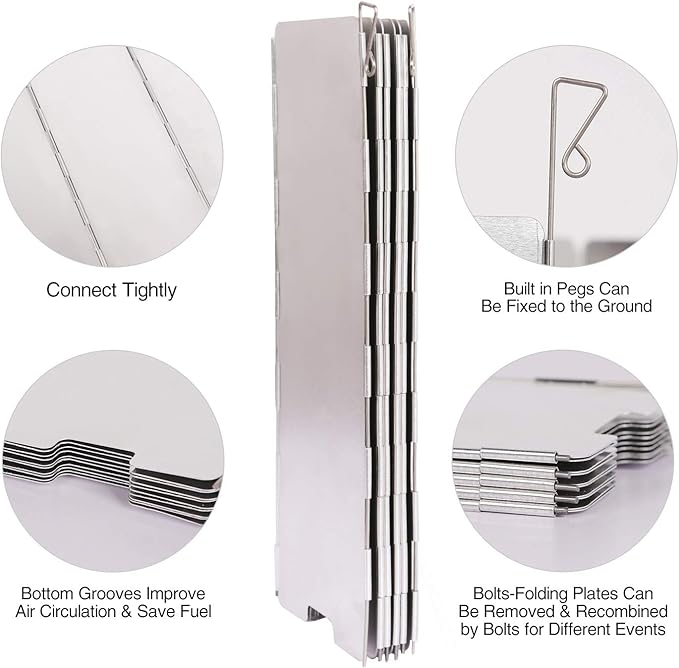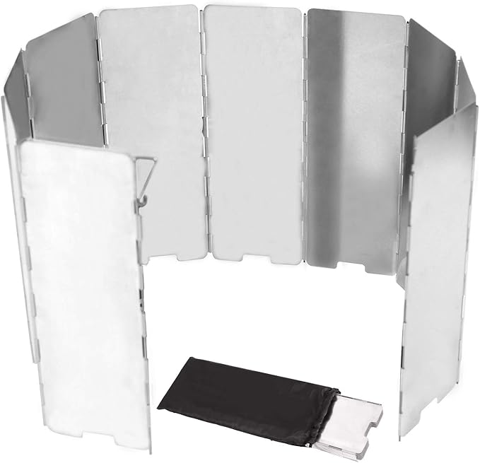 REDCAMP Folding Outdoor Stove Windscreen, Lightweight Butane Burner Windshield,10 Plates Aluminum Camping Stove Windshield with Carrying bag