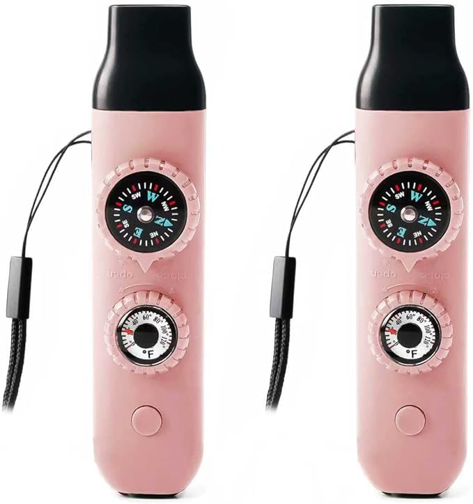 - The 7-in-1 Safety Whistle sets 7 functions including Emergency Whistle, Compass, Thermometer, LED Signal Light, Magnifying Glass, Reflector and Sealed Warehouse with good playability (The uniquely designed miniature built-in storage bin can be used to store important personal information, allowing rescuers to grasp your situation at the first time) (NOTE: If you need help in an emergency, you can try whistling softly, which is louder than whistling at full force)