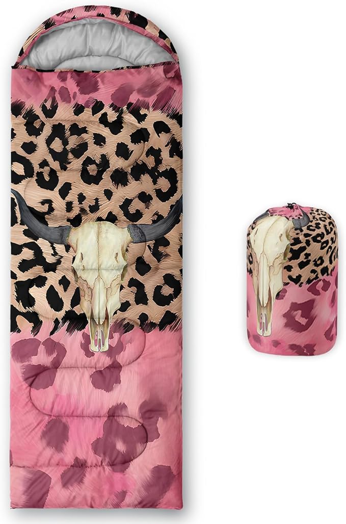 - Unique Bull Skull Design:This Bull Skull pattern sleeping bag is made of 3D digital printing with vibrant colors and patterns,size: 31W x 90L inches,temperature range: 32℉-77℉ (0℃-25℃),it also also have a weather resistant waterproof design to keep you warm and prevent you from any dampness,can be used in 3 seasons